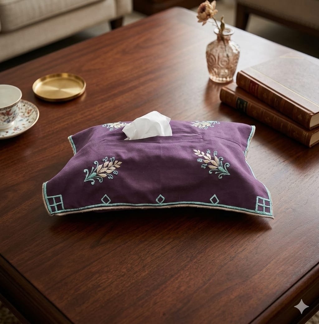 TISSUE BOX WITH EMBROIDRED COVER,,,